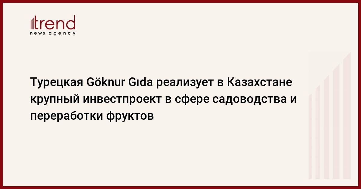 Потенциальными регионами для реализации проекта рассматриваются Алматинская, Жамбылская и Туркестанская области. Также достигнуты соответствующие договоренности казахстанских партнеров с компанией Göknur Gıda. Стоимость проекта составляет 204 млн долл. США. В рамках проекта предполагается создание 500 рабочих мест.