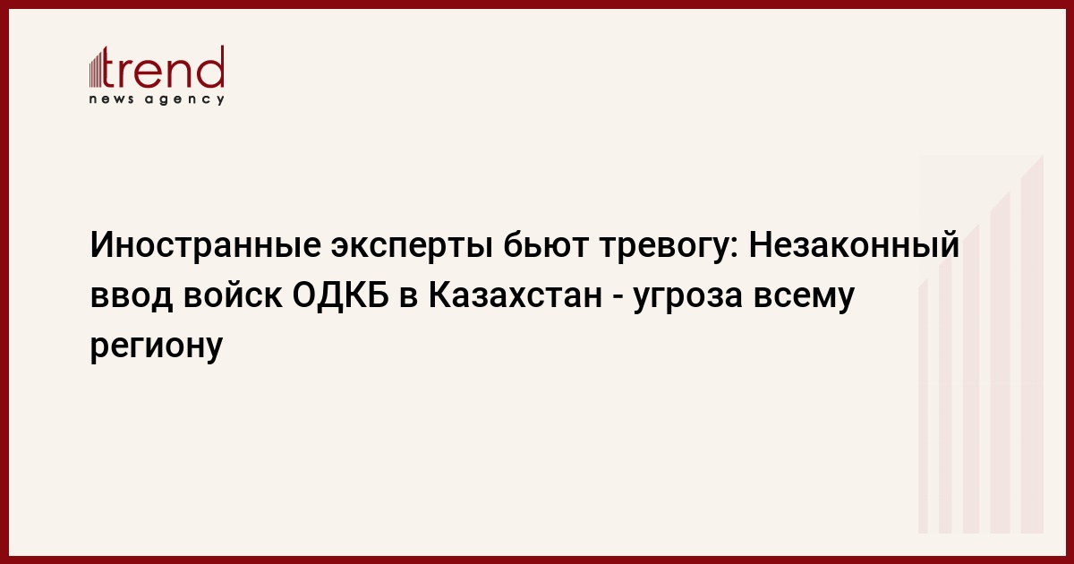 Как сказал Trend американский эксперт Питер Тейс, ввод вооруженных сил ОДКБ в Казахстан напоминает о незаконном вводе советских войск в Азербайджан тридцать два года назад для подавления мирных протестов свободолюбивого азербайджанского народа.