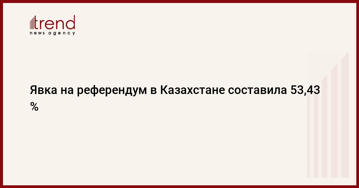 Всего по состоянию на 14:00 бюллетени получили 6 262 973 гражданина Казахстана. Это составляет 53,43 % избирателей, включенных в список, сообщила член Центральной комиссии референдума Анастасия Щегорцова, передает Trend со ссылкой на МИА «Казинформ».