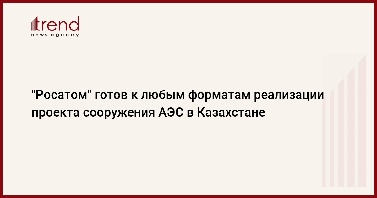 БАКУ /Trend/ - Государственная корпорация по атомной энергии "Росатом" готова к любым форматам реализации проекта сооружения атомной электростанции, в наибольшей степени отвечающим интересам казахстанской стороны.