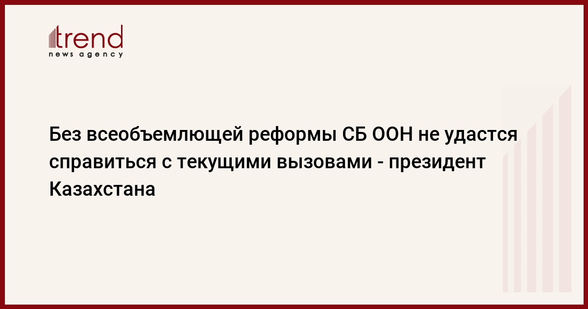 "Глубоко убежден, что голоса "средних держав" и всех развивающихся стран в совете должны быть усилены и четко услышаны. Поскольку Совет Безопасности, по-видимому, не в состоянии выйти из тупика, он должен стать более представительным, чтобы другие страны, включая Казахстан, могли играть более значительную роль в поддержании мира и безопасности. В нашем регионе растущая активность стран-участниц стала позитивным фактором в превращении Совещания по взаимодействию и мерам доверия в Азии в полноценную международную организацию, способную внести вклад в посредничество и миротворчество на континенте. Аналогичным образом Казахстан, как действующий председатель Шанхайской организации сотрудничества, выдвинул Инициативу о мировом единстве за справедливый мир и согласие. Эта инициатива, к которой мы приглашаем вас присоединиться, включает в себя новую парадигму безопасности, справедливую экономическую среду и чистую планету. Открытый диалог между Глобальным Югом и Глобальным Севером является его центральным пунктом", - сказал президент Казахстана.