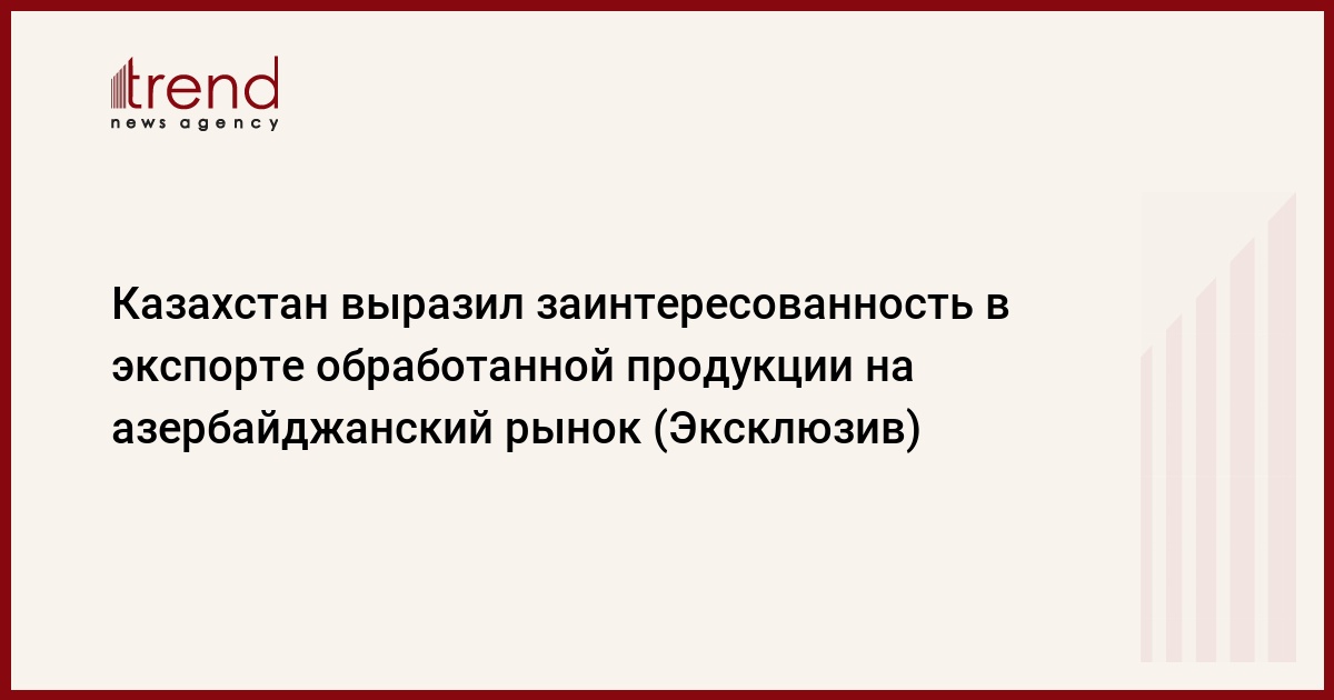 "Важно отметить, что рынок Азербайджана представляет большой интерес для экспорта казахстанской обработанной продукции. Мы готовы поставить более 100 несырьевых товарных позиций в Азербайджан на сумму около 300 миллионов долларов", - подчеркнул вице-министр.