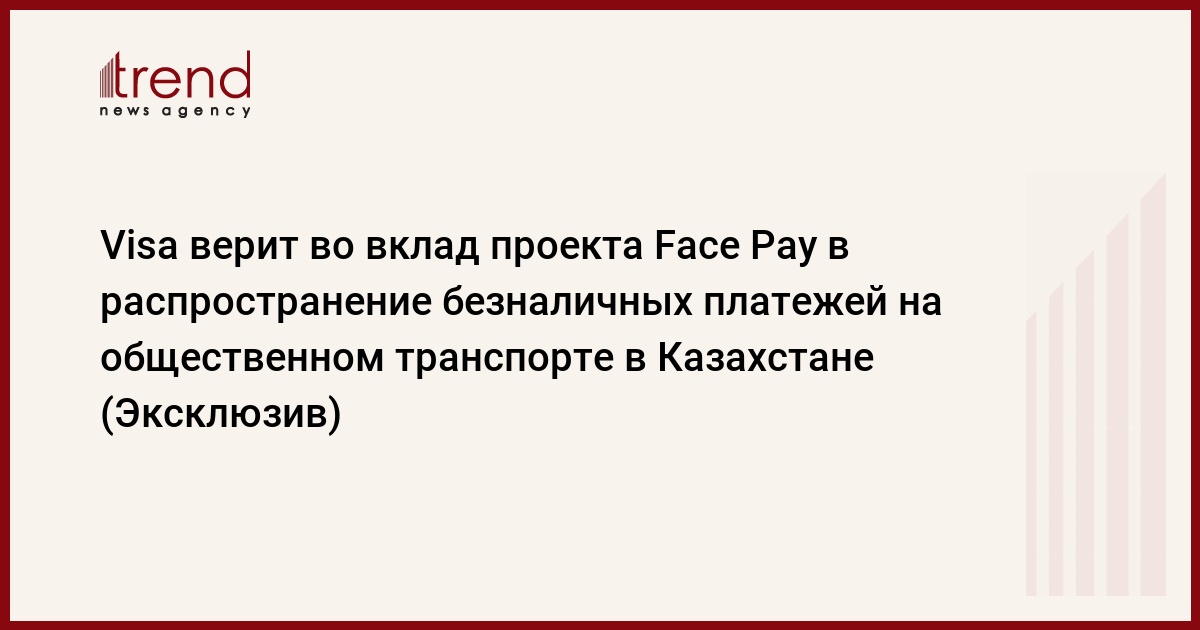 БАКУ /Trend/ - Visa верит во вклад инновационного проекта Face Pay в распространение безналичных платежей на общественном транспорте в Казахстане.