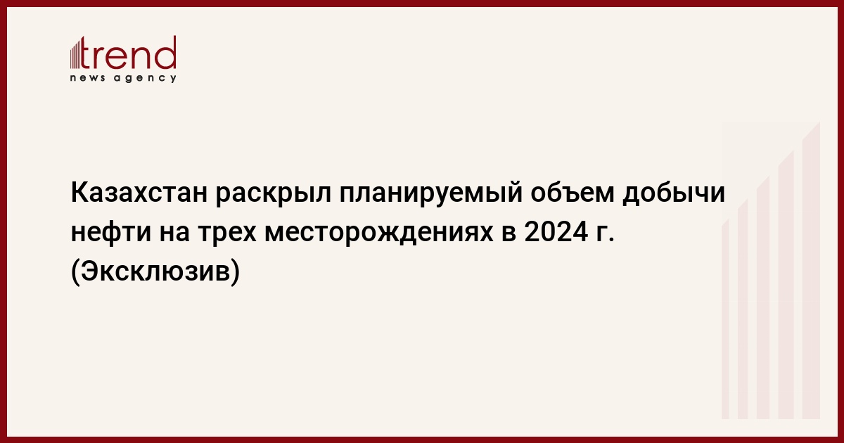 БАКУ /Trend/ - Казахстан планирует в 2024 году добыть до 88,3 млн тонн нефти на трех крупных месторождениях - Тенгиз, Кашаган и Карачаганак.