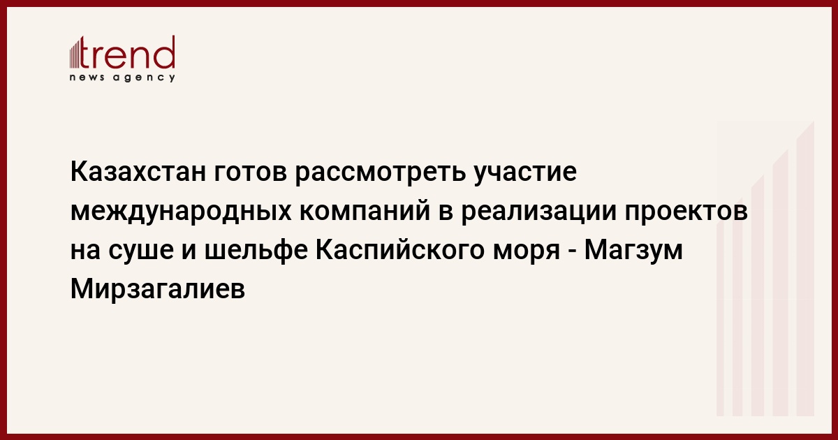 АСТАНА /Trend/ - Казахстан готов рассмотреть участие международных компаний в реализации проектов на суше и шельфе Каспийского моря.