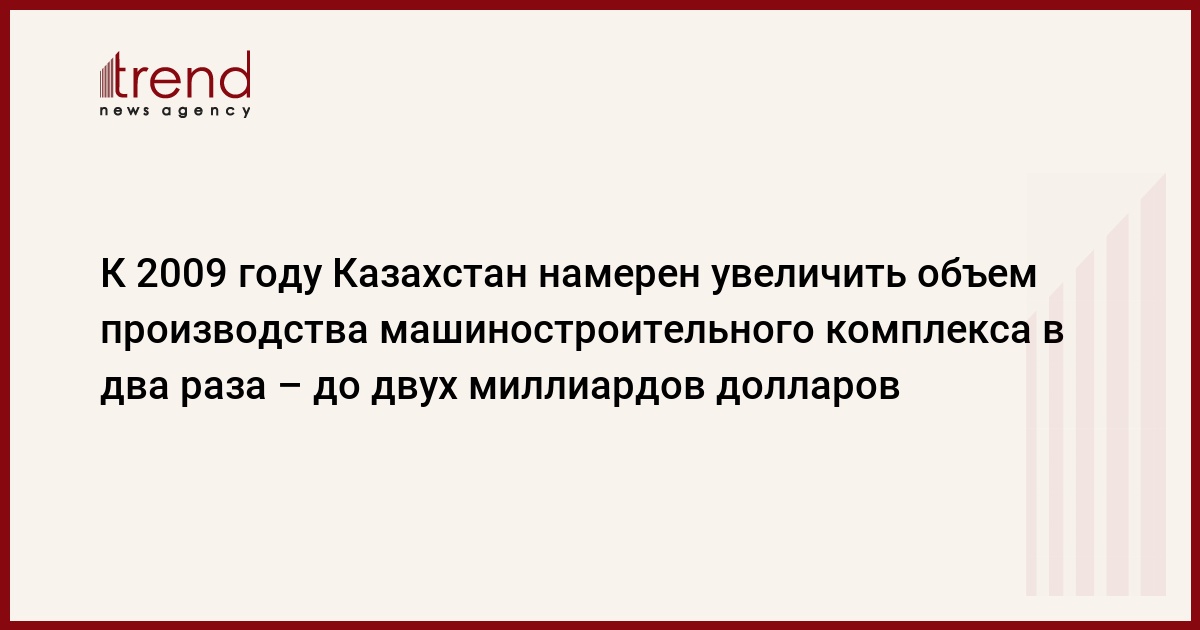 К 2009 году Казахстан намерен увеличить объем производства машиностроительного комплекса в два раза - до двух миллиардов долларов.