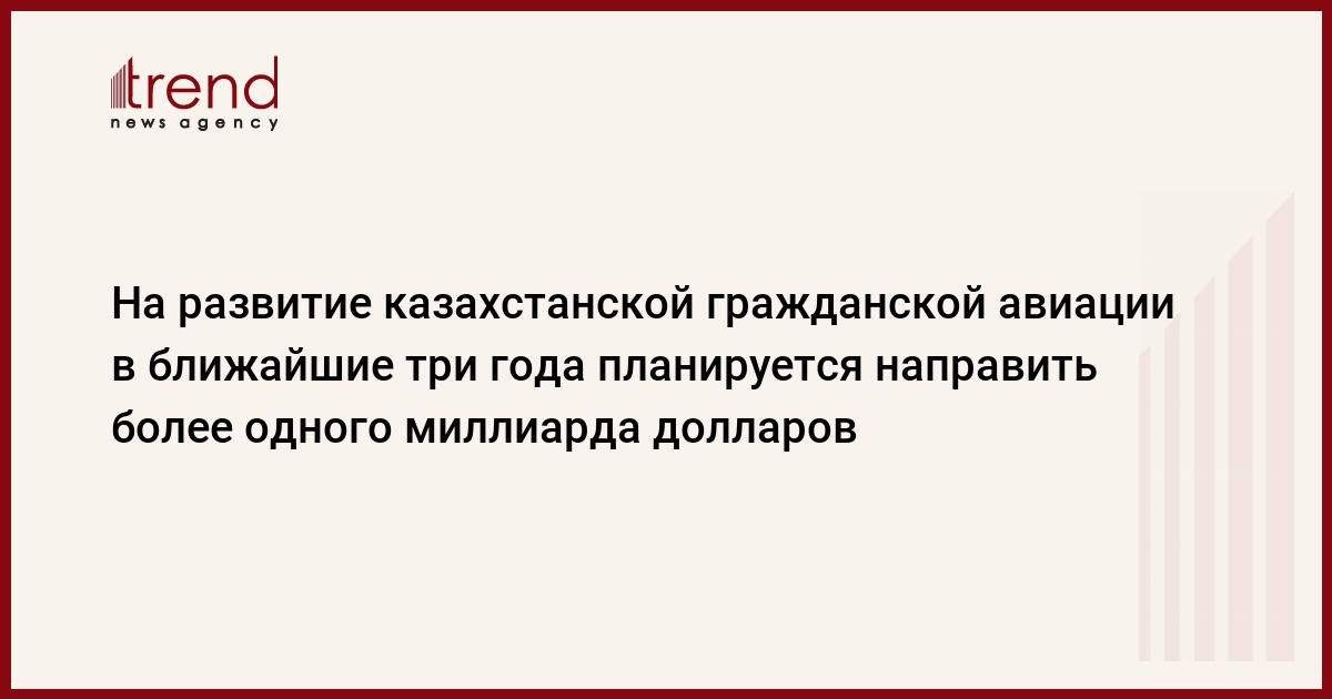 На развитие казахстанской гражданской авиации в ближайшие три года планируется направить более одного миллиарда долларов, заявил министр транспорта Серик Ахметов, сообщает собкор Trend в Астане.