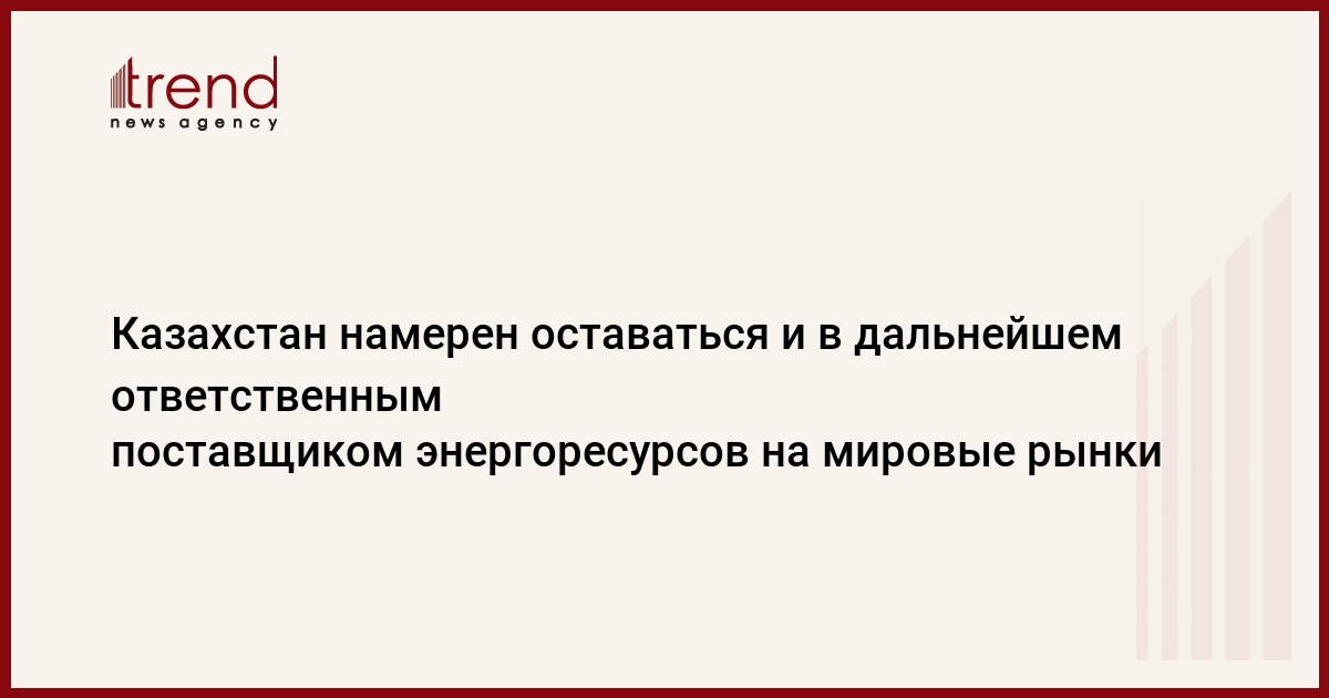 Казахстан намерен оставаться и в дальнейшем ответственным поставщиком энергоресурсов на мировые рынки, заявил премьер-министр республики Карим Масимов.