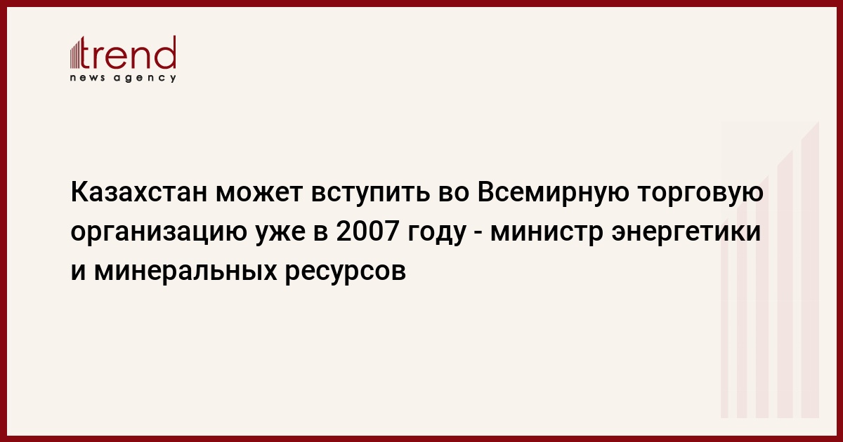 Казахстан может вступить во Всемирную торговую организацию уже в 2007 году. Об этом в эксклюзивном интервью заявил министр энергетики и минеральных ресурсов Бактыкожа Измухамбетов.