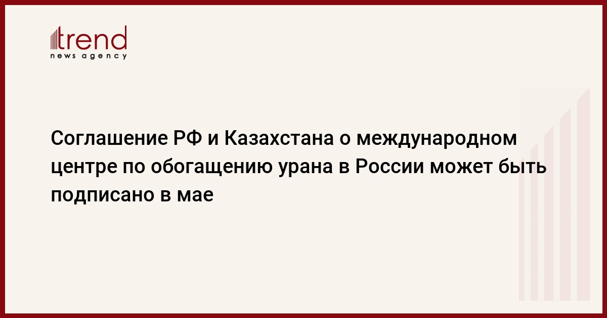Россия и Казахстан планируют подписать межправительственное соглашение о создании международного центра по обогащению урана на территории РФ в мае 2007г., сообщили сегодня в Росатоме, передает РБК .