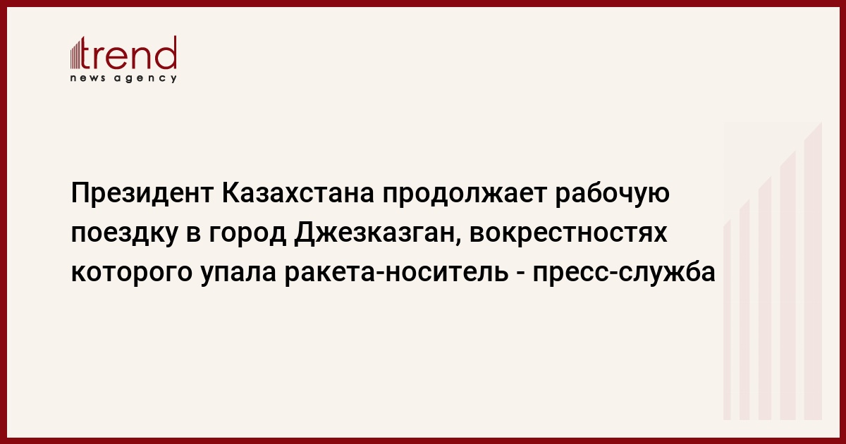 Президент Казахстана Нурсултан Назарбаев находится с рабочей поездкой в городе Джезказган, в окрестностях которого сегодня утром упала ракета-носитель "Протон-М".