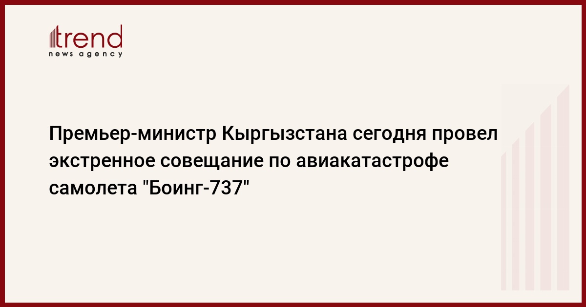 Кыргызская республика, Бишкек, 25 августа /корр. Trend Р.Мешадигасанлы/ Сегодня премьер-министр Игорь Чудинов провел экстренное совещание по авиакатастрофе самолета "Боинг-737".