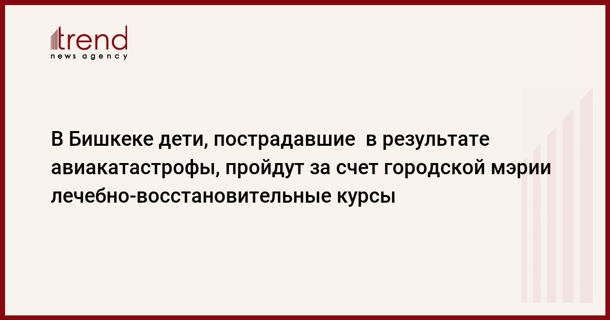 Кыргызстан, Бишкек, 25 августа /корр. Trend Р.Мешадигасанлы/ Дети, пострадавшие в результате авиакатастрофы в небе над Бишкеком, пройдут за счет городской мэрии лечебно-восстановительные курсы.