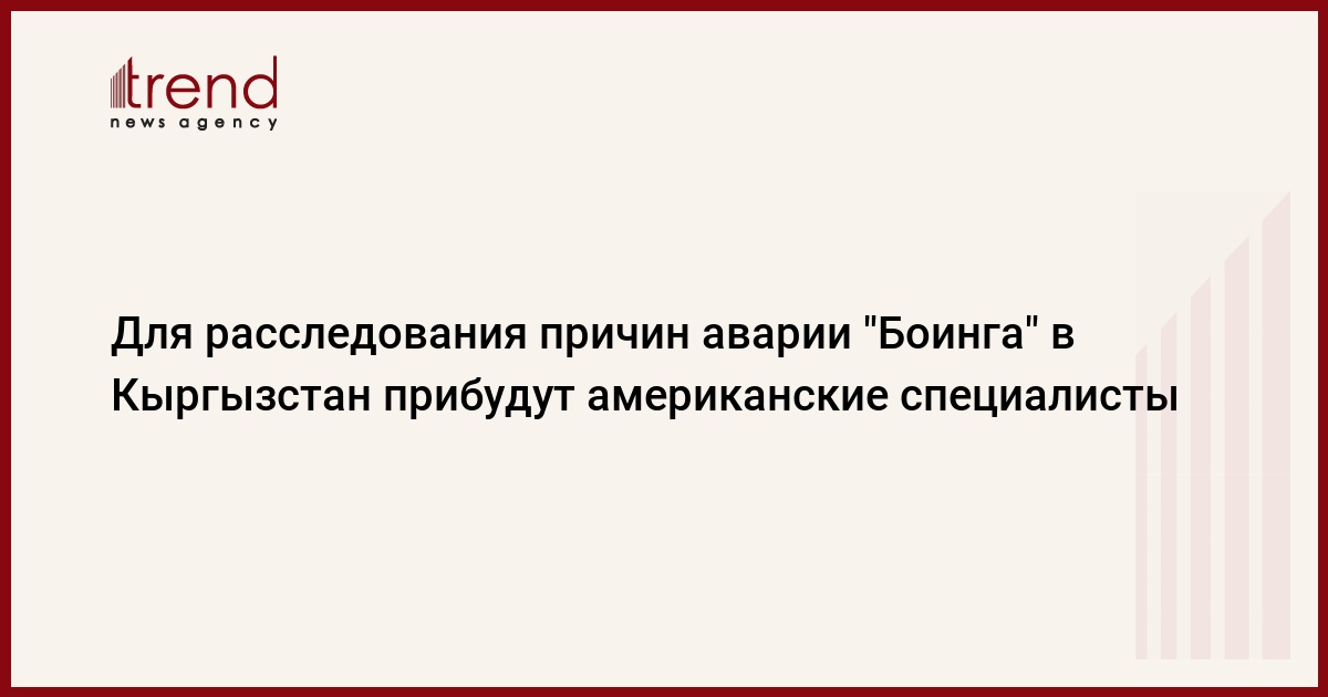 Кыргызстан, Бишкек, 27 августа /корр. Trend Р.Мешадигасанлы/ Для расследования причин аварии "Боинга" в Кыргызстан прибудут американские специалисты. Это специалисты из Национального комитета безопасности перевозок США (NTSB), которые также будут работать в составе комиссии.