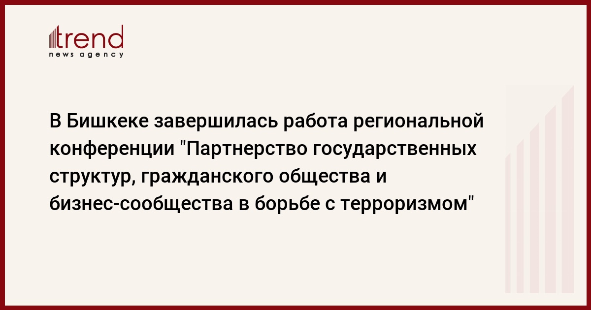 Кыргызстан, Бишкек, 06 ноября /корр. Trend Р.Мешадигасанлы/ Завершилась работа региональной конференции, посвященной "Партнерство государственных структур, гражданского общества и бизнес-сообщества в борьбе с терроризмом", которая была организована Государственным Комитетом Национальной Безопасности и Министерством иностранных дел Кыргызской Республики совместно с Организацией по безопасности и сотрудничеству в Европе. Об этом корреспонденту Trend сообщили в пресс-службе МИД Кыргызстана.