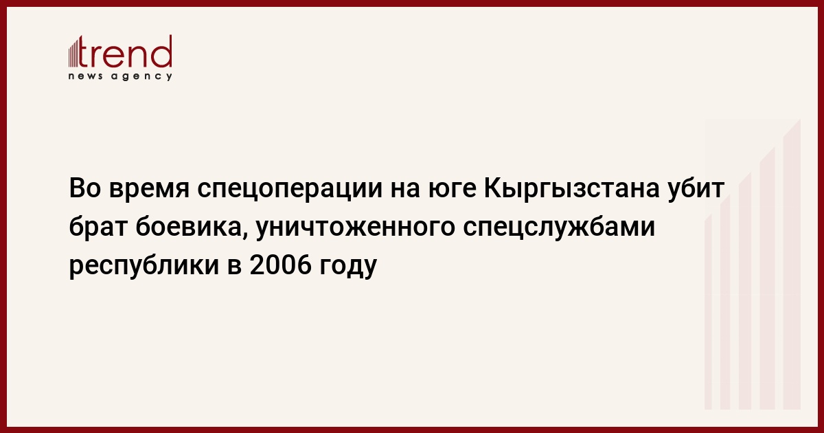 Во время спецоперации в Сузакском районе Джалал-Абадской области Кыргызстана убит брат боевика, уничтоженного спецслужбами республики в 2006 году. Об этом ИА "24.kg" сообщили источники в правоохранительных органах.