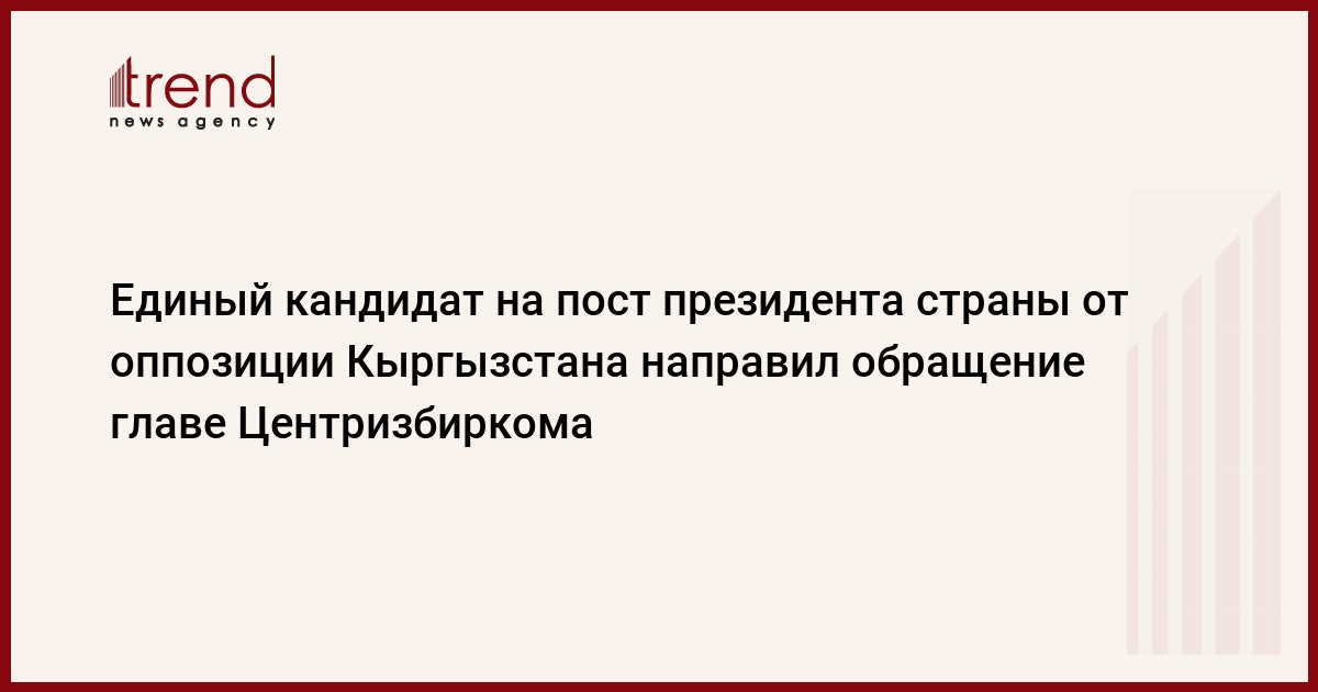 Единый кандидат на пост президента страны от оппозиции Кыргызстана направил обращение главе Центризбиркома, пишет ИА "24.kg".