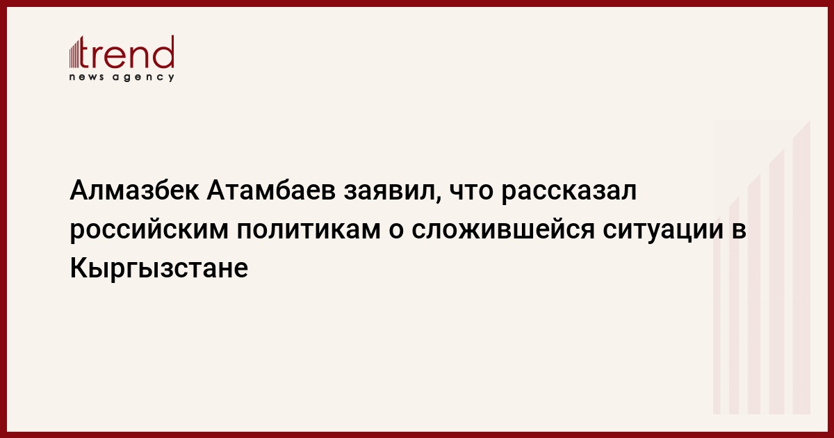Он сказал, что руководство зарубежных стран не владеет всей информацией относительно происходящих в Кыргызстане событиях. "Они верят своим госканалам и не предполагают, что ситуация дошла до такой степени", - заявил Атамбаев.