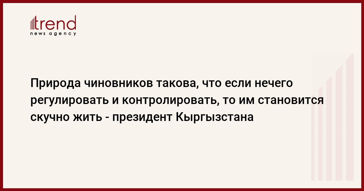 "Природа чиновников такова, что если нечего регулировать и контролировать, то им становится скучно жить", - заявил сегодня на заседании Инвестиционного совета при главе государства президент Кыргызстана Курманбек Бакиев, пишет ИА "24.kg".