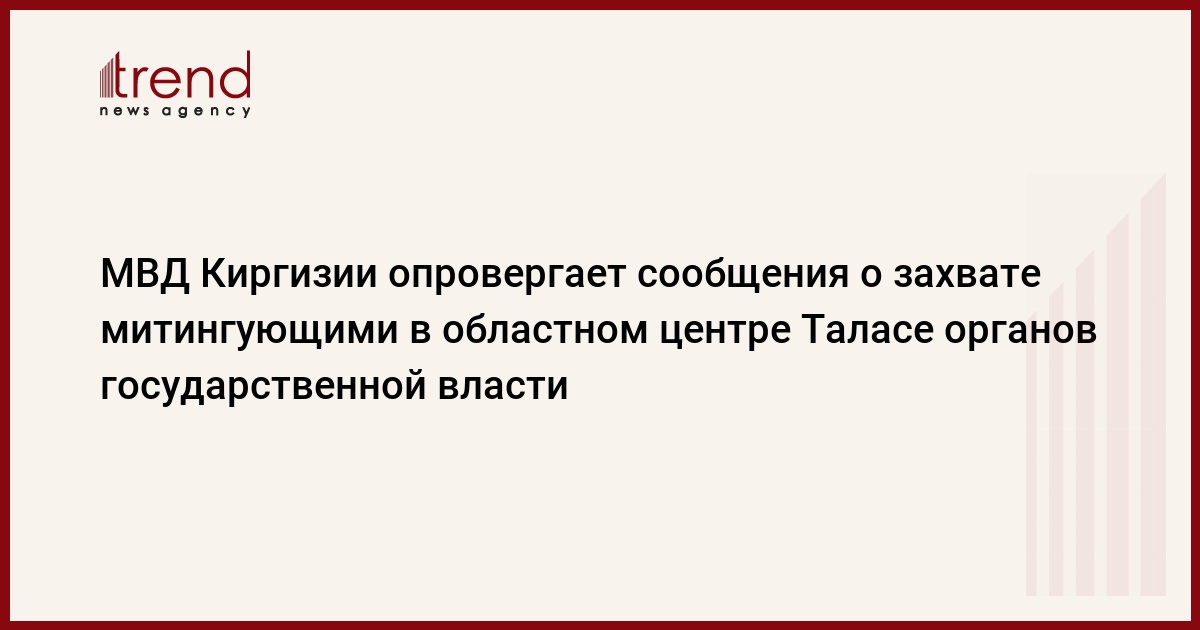 Сообщения некоторых средств массовой информации о захвате в областном центре Киргизии городе Таласе зданий органов государственной власти не соответствуют действительности. Об этом корр.ИТАР-ТАСС заявил сегодня представитель МВД республики Рахматулла Ахмедов.