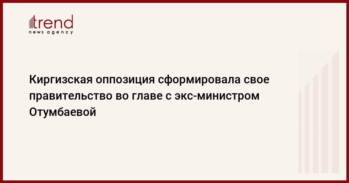 Киргизская оппозиция избрала правительство народного доверия во главе с экс-министром иностранных дел Розой Отунбаевой, сообщает РИА Новости со ссылкой на агентство АКИpress.