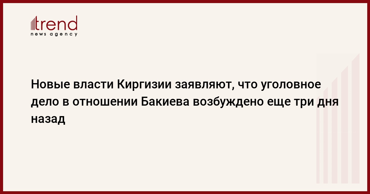 В Киргизии возбуждено уголовное дело в отношении бывшего президента Курманбека Бакиева, сообщил журналистам в субботу вице-премьер Азимбек Бекназаров, пишет Интерфакс.
