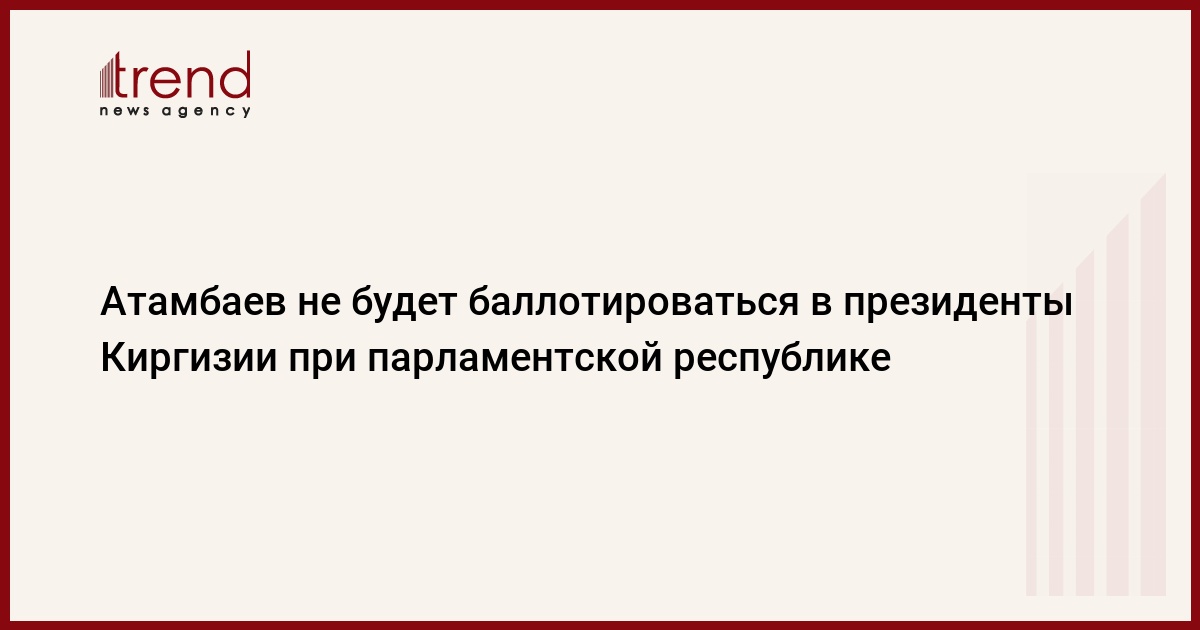 Первый заместитель председателя временного правительства Киргизии, лидер социал-демократической партии Алмазбек Атамбаев не будет баллотироваться в президенты в случае, если республика будет преобразована в парламентскую, пишет РИА Новости.