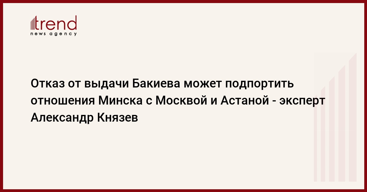"Отказ в экстрадиции Бакиева может серьезно подпортить и без того непростые отношения Минска с Москвой, Астаной, не говоря уже о Бишкеке", - сказал Trend по электронной почте Князев.