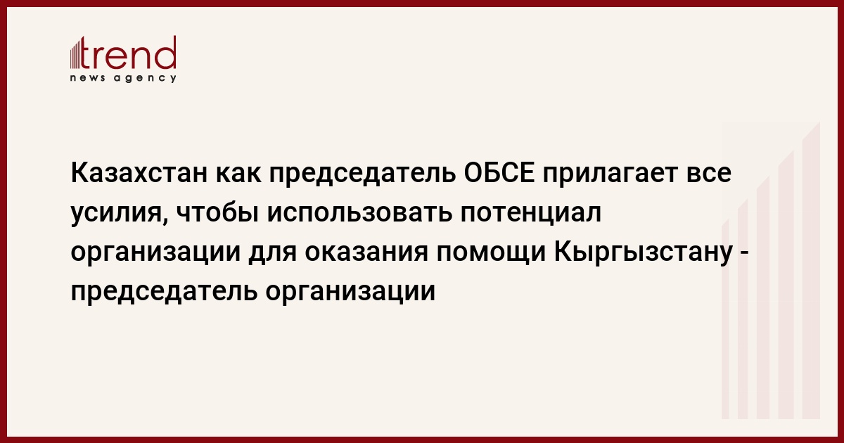 Казахстан в качестве председателя ОБСЕ прилагает все усилия, чтобы использовать потенциал организации для оказания помощи Кыргызстану, сказал в интервью Trend действующий председатель ОБСЕ, Госсекретарь - министр иностранных дел Казахстана Канат Саудабаев.