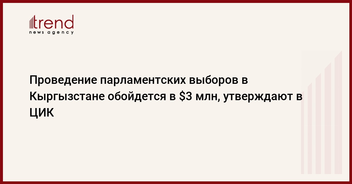 "По нашим расчетам, это примерно сумма, эквивалентная 3 миллионам долларов. Впервые в смету расходов выборов заложена оплата труда членов областных, городских и районных избирательных комиссий. Ранее их работа материально не вознаграждалась. Также будут увеличены расходы на проведение тренингов для членов комиссий и в целом - на участки, количество которых увеличивается", - сообщили в четверг на заседании ЦИК А. Сариев.