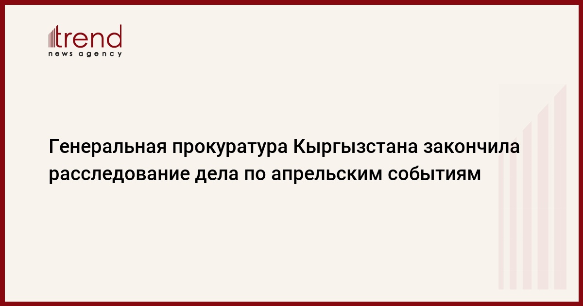 Генеральная прокуратура Кыргызстана закончила расследование дела по апрельским событиям, в результате которых у Дома правительства в Бишкеке погибло более 80 человек. Об этом сообщил сегодня на совещании в правительстве генпрокурор КР Байтемир Ибраев, пишет ИА "24.kg".