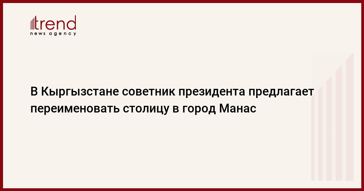 В Кыргызстане советник президента предлагает переименовать столицу страны Бишкек в город Манас. С очередной инициативой сегодня выступил советник президента переходного периода по политическим вопросам Топчубек Тургуналиев, пишет ИА "24.kg".