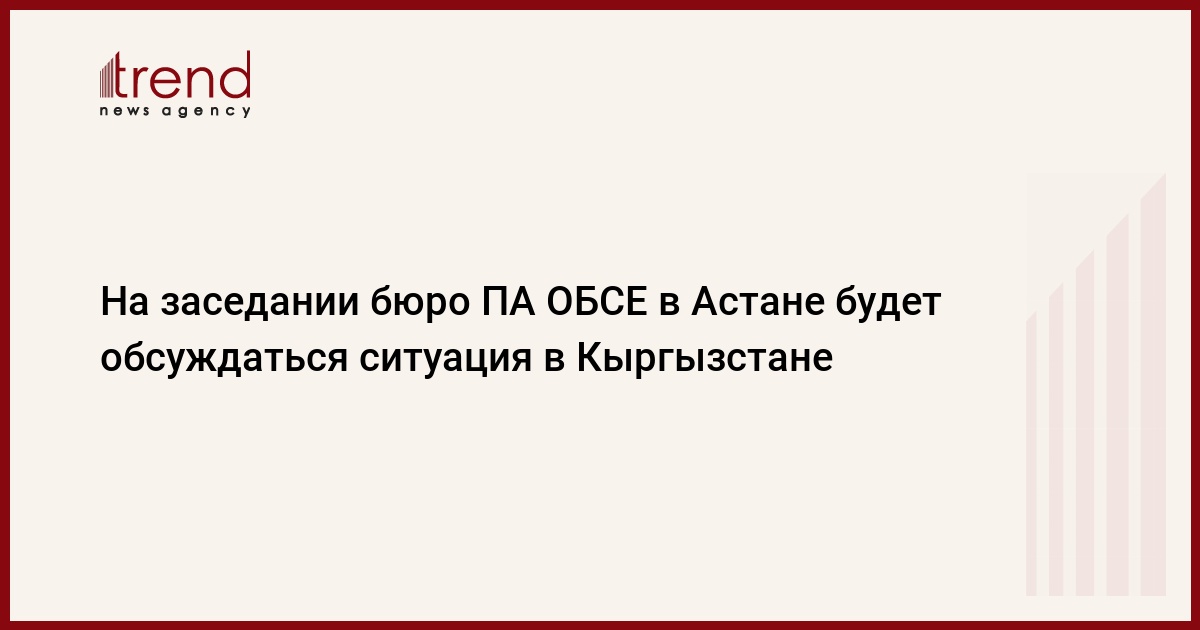 На заседании бюро Парламентской ассамблеи (ПА) ОБСЕ 30 ноября в Астане будет обсуждаться ситуация в Кыргызстане, сообщает пресс-служба сената парламента Казахстана.