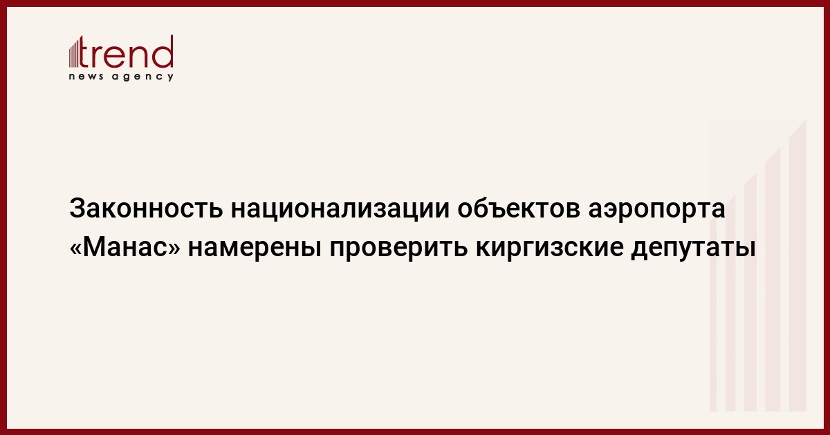 Необходимо проверить законность национализации малого терминала и перрона международного аэропорта "Манас". С таким предложением выступила депутат Жогорку Кенеша Дамира Ниязалиева на пленарном заседании парламента в четверг, сообщает КирТАГ.