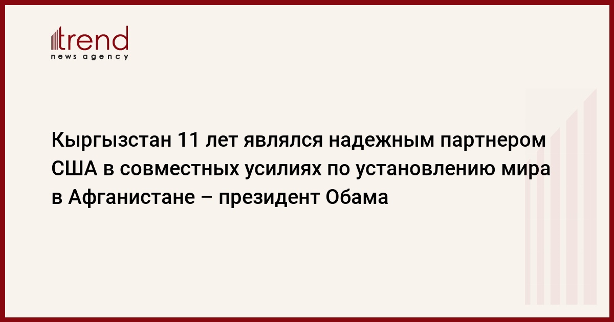 Кыргызстан 11 лет являлся надежным партнером США в совместных усилиях по установлению мира в Афганистане, сообщает КирТАГ . Об этом пишет президент США Барак Обама в письме, поступившем на имя президента Кыргызстана Алмазбека Атамбаева, передает пресс-служба главы государства во вторник.