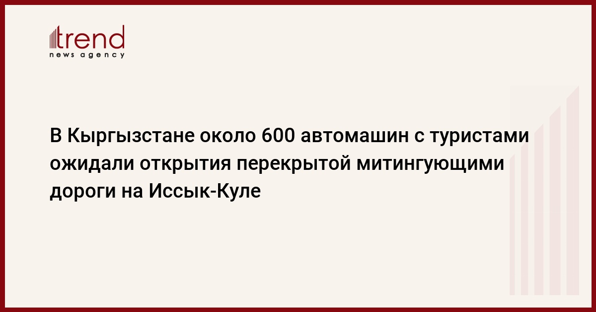 В Чолпон-Ате около 600 автомашин с туристами несколько часов ожидали открытия дороги, перекрытой митингующими местными жителями, сообщил КирТАГ руководитель пресс-службы УВД Иссык-Кульской области Сталбек Усубакунов в четверг.