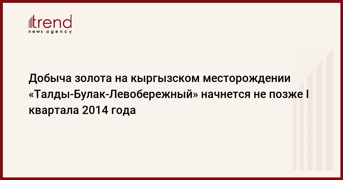 Работы по добыче золота на месторождении "Талды-Булак-Левобережный" начнутся не позже первого квартала 2014 года. Об этом сообщил в ходе прямой линии премьер-министр Жанторо Сатыбалдиев во вторник, пишет КирТАГ.