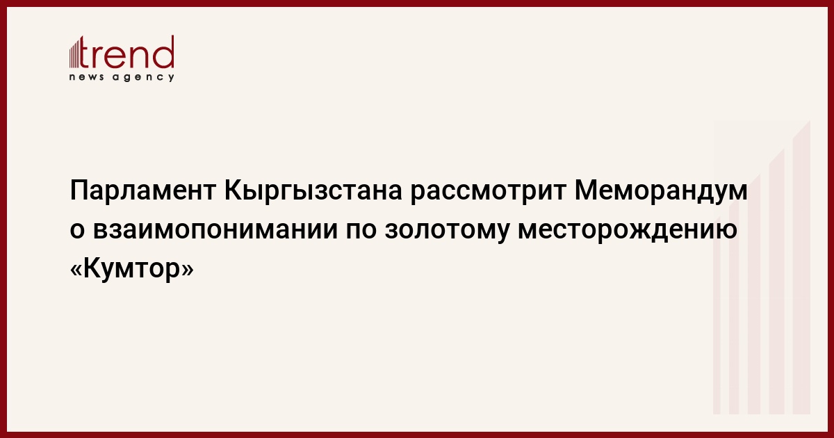 Меморандум о взаимопонимании по проекту "Кумтор" между правительством КР, открытым акционерным обществом "Кыргызалтын" и компанией Centerra Gold Inc., подписанный девятого сентября 2013 года в городе Бишкек, рассмотрен на совместном заседании комитета по международным делам и комитета по аграрной политике, водным ресурсам, экологии и региональному развитию Жогорку Кенеша (парламента) Кыргызстана, сообщает пресс-служба парламента в понедельник, пишет КирТАГ.