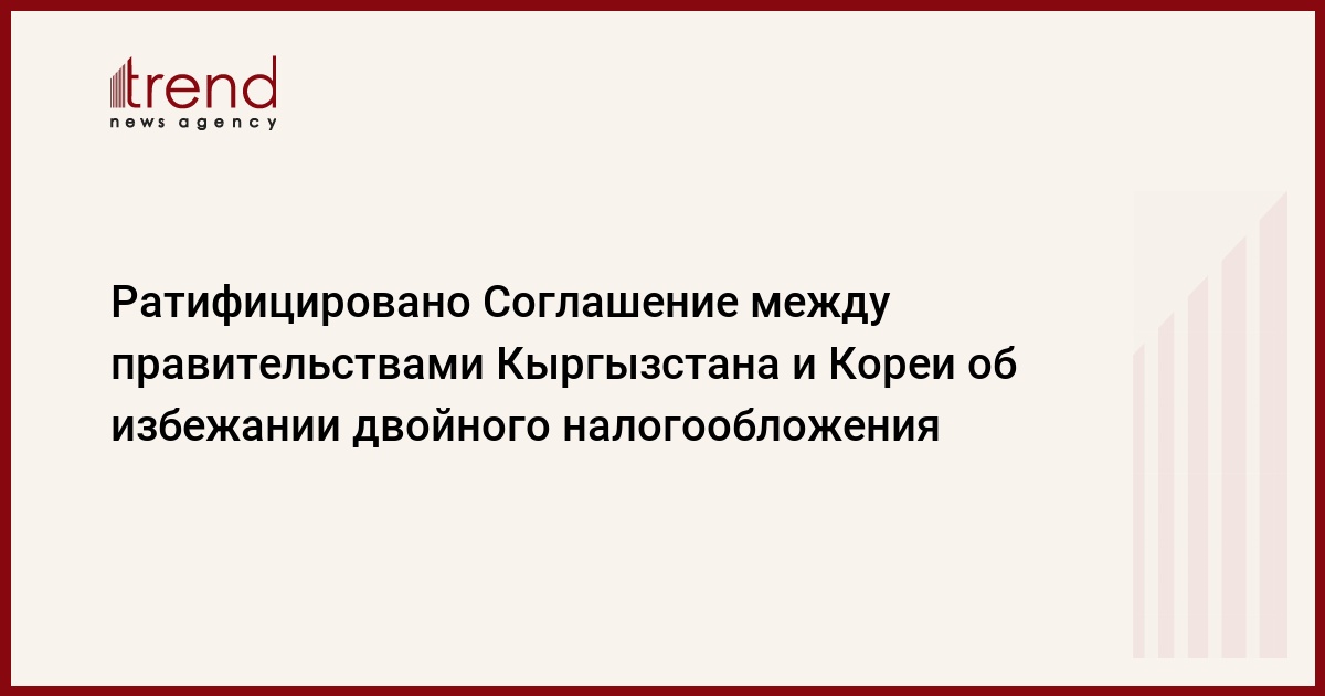 Президент Кыргызстана Алмазбек Атамбаев подписал Закон КР "О ратификации Соглашения между Правительством Кыргызской Республики и Правительством Республики Корея об избежании двойного налогообложения и предотвращении уклонения от уплаты налогов в отношении налогов на доходы и капитал, подписанного 11 декабря 2012 года в городе Сеул", передает информационное агентство "Кабар".