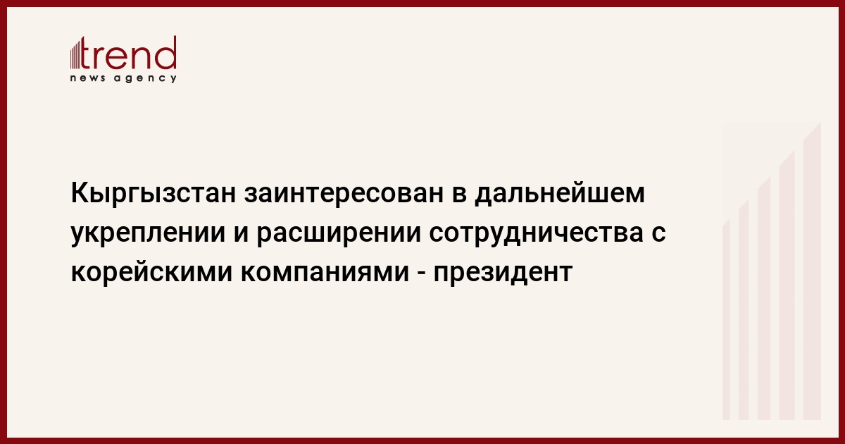 Кыргызстан заинтересован в дальнейшем укреплении и расширении сотрудничества с корейскими компаниями. Об этом заявил во вторник в ходе кыргызско-корейского инвестиционного форума, проходящего в Сеуле, президент Кыргызстана Алмазбек Атамбаев, передает информационное агентство "Кабар".