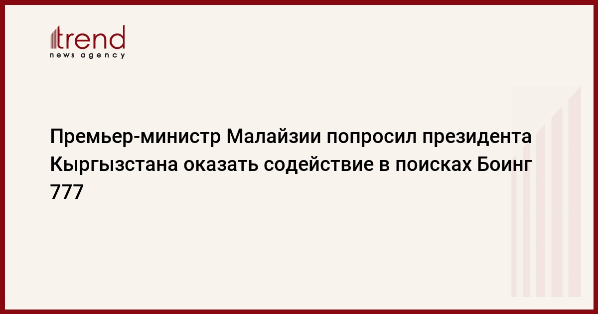 В ходе разговора Наджиб Разак попросил Алмазбека Атамбаева оказать содействие в поисках самолета "Боинг 777" авиакомпании "Малазийские авиалинии". Была выражена просьба предоставить всю информацию, которая может быть использована в определении маршрута передвижения самолета.