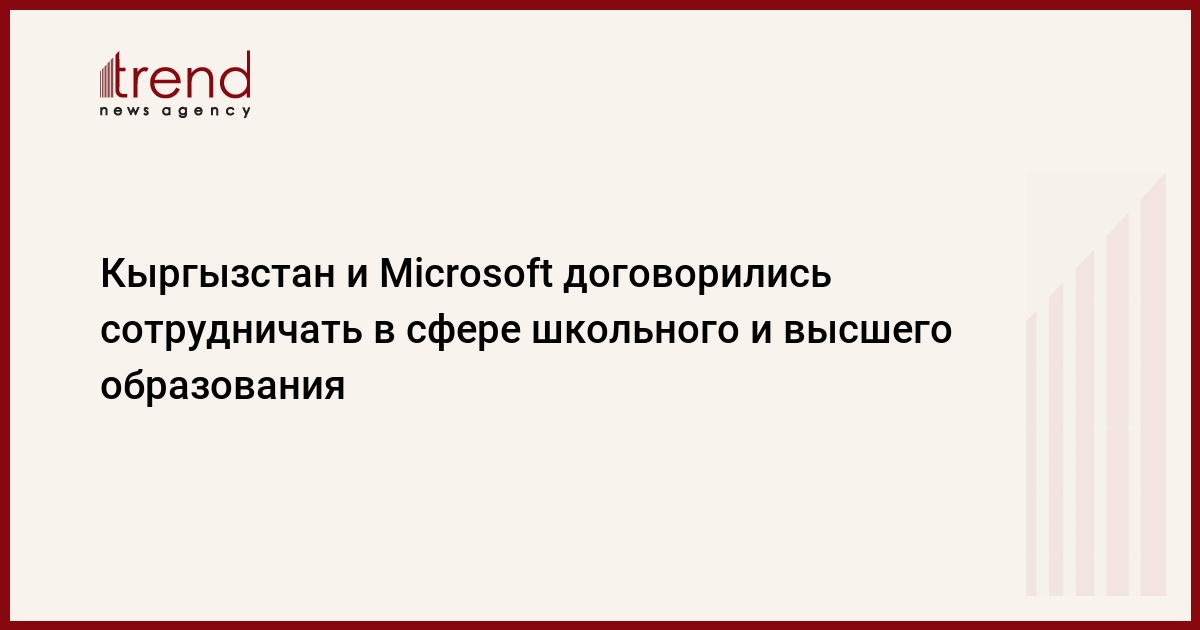 Во время встречи, вице-премьер-министр затронула вопросы внедрения современных информационных технологий и сервисов в образовательных учреждениях страны. В частности рассматривался вопрос о возможности бесплатного использования программного обеспечения Microsoft в образовательных учреждениях и органах управления образованием Кыргызстана в рамках нового проекта компании.