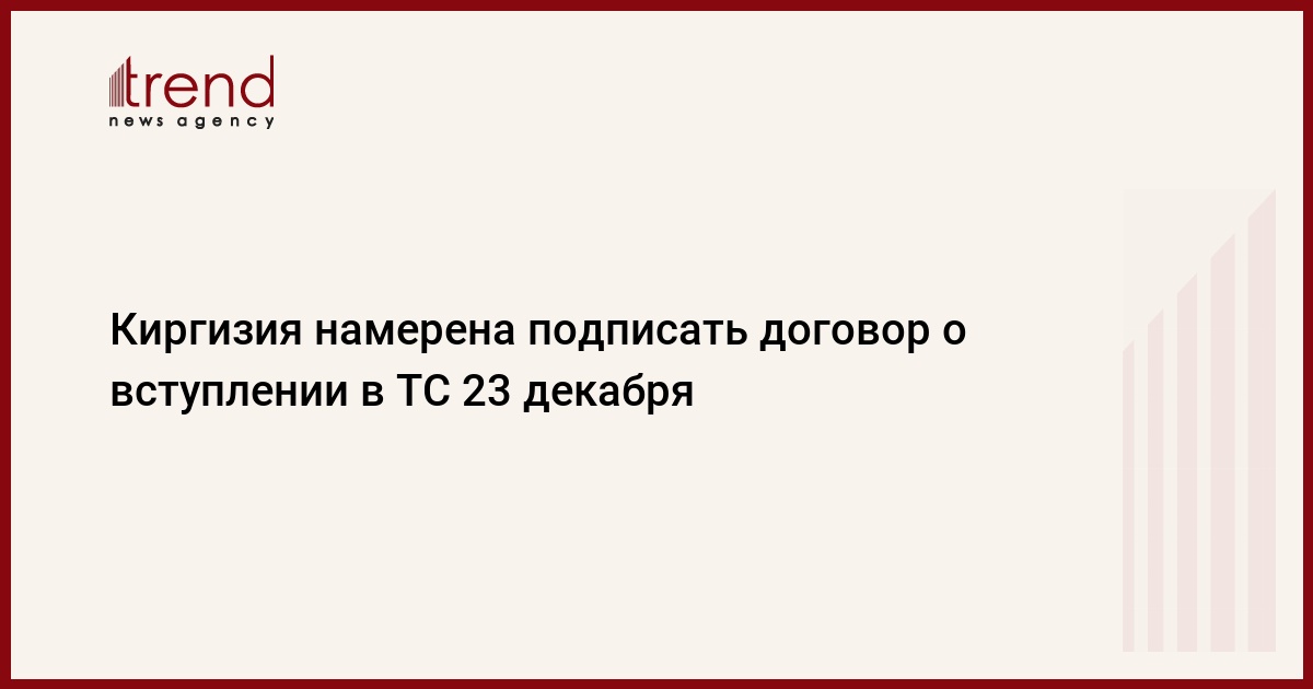 Договор о присоединении Киргизии к Таможенному союзу планируется подписать 23 декабря, сообщил РИА Новости в понедельник замглавы аппарата президента республики, руководитель отдела внешней политики Сапар Исаков.