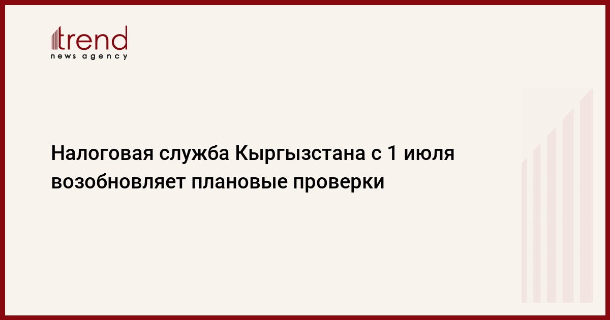 В Кыргызстане с 1 июля Государственная налоговая служба (ГНС) при Министерстве экономики и финансов может возобновить плановые проверки. Об этом агентству «Кабар» сообщили в пресс-службе ГНС КР, передает Trend.