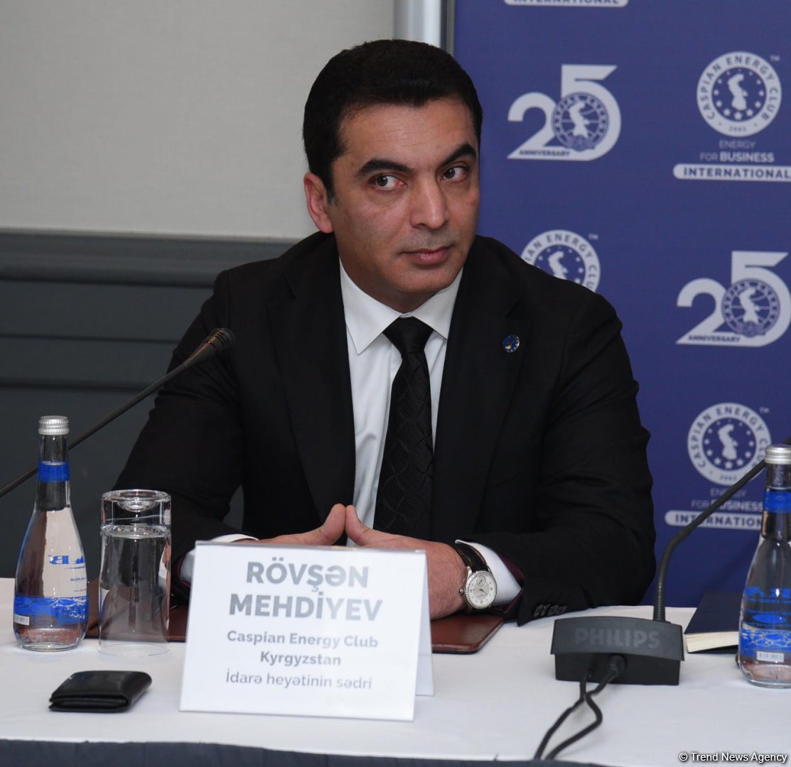 Как сообщает в четверг Trend, об этом сказал новоназначенный председатель "Caspian Energy Club Kyrgyzstan" Ровшан Мехдиев в ходе пресс-конференции, посвященной церемонии подписания в связи с его назначением.
