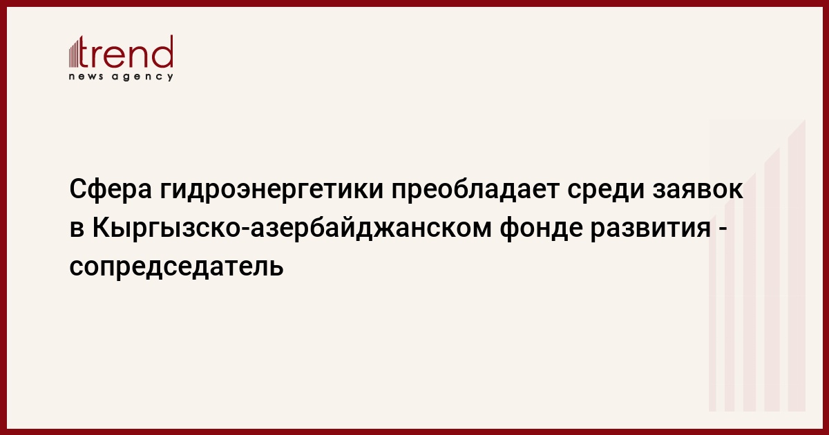 БИШКЕК /Trend/ - Большая часть заявок, направленных в Кыргызско-азербайджанский фонд развития, относится к малой гидроэнергетике.