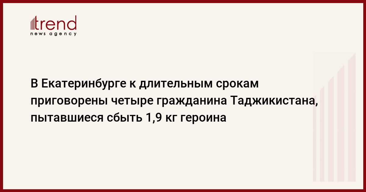 Железнодорожный районный суд г.Екатеринбурга вынес обвинительный приговор в отношении четырех граждан Таджикистана, намеревавшихся сбыть наркотики на территории Свердловской области, пишет РБК. Как сообщили в прокуратуре региона, в ходе следствия было установлено, что 20-летний Джумабой Баймуллаев, 25-летний Зафарчон Саидов, 39-летний Комилджон Сакиев и 26-летний Тошмахмад Тошов, проживающие в Екатеринбурге и не имеющие регистрации на территории РФ, у неустановленного лица приобрели 1 кг 890 г героина. Они расфасовали наркотик и пытались его сбыть, но были задержаны сотрудниками милиции. Наркотики изъяты.