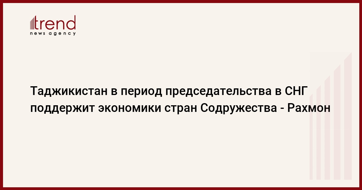 Таджикистан в период председательства в СНГ в 2011 году, когда будет отмечаться 20-летие Содружества, намерен в первую очередь повысить эффективность организации, поддержать экономики стран СНГ, а также отрегулировать социальные и трудовые отношения в рамках Содружества, заявил в пятницу президент страны Эмомали Рахмон.