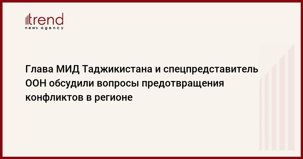 Вопросы предотвращения конфликтов и укрепления безопасности министр иностранных дел Таджикистана Хамрохон Зарифи в пятницу в ходе телефонного разговора со специальным представителем генерального секретаря ООН, главой регионального центра ООН по превентивной дипломатии в Центральной Азии Мирославом Енча по просьбе последнего, пишет CA-News.