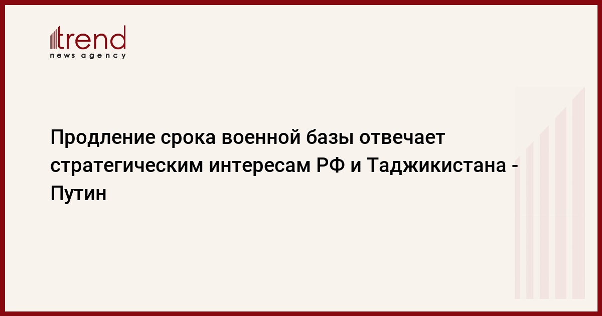 Пребывание российской военной базы в Таджикистане до 2042 года будет отвечать стратегическим интересам двух стран и обеспечит безопасность в регионе, заявил президент РФ Владимир Путин, передает РИА Новости.